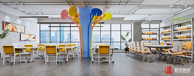 整體空間氛圍是以時尚簡約的風格,加入對比度強烈的色彩作為空間的點綴之筆,讓整個辦公室裝修設計空間有了更好的層次感。同時因為這些色彩的加入,也讓這個辦公室裝修設計空間多了一份童趣的屬性,讓人感受到冠誠玩具廠辦公空間想要成為該行業的辦公裝修設計空間的標桿。#廣州辦公室裝修設計#